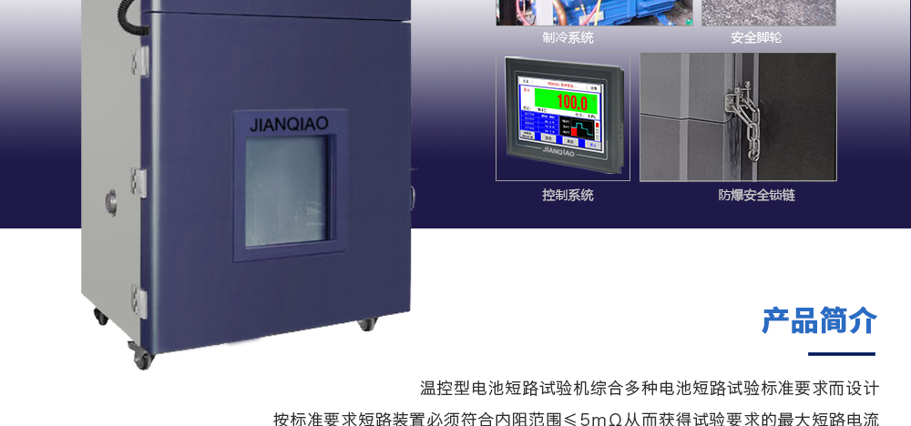 產(chǎn)品型號(hào):JQ-8115(可定制) 品牌:劍 喬 用途:溫控型電池短路試驗(yàn)機(jī)綜合多種電池短路試驗(yàn)標(biāo)準(zhǔn)要求而設(shè)計(jì)按標(biāo)準(zhǔn)要求短路裝置必須符合內(nèi)阻范圍≤5mΩ從而獲得試驗(yàn)要求的最大短路電流咨詢熱線:13829135130
