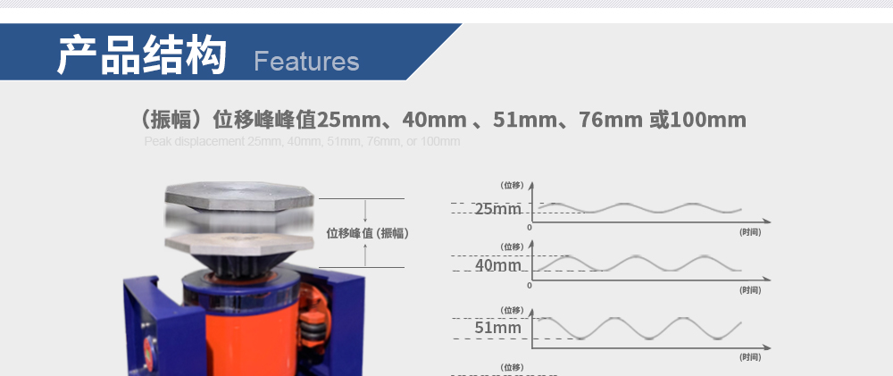 • **** 位移可選76mm或100mm.uDisplacement peak-to-peak value of  76mm or 100mm.